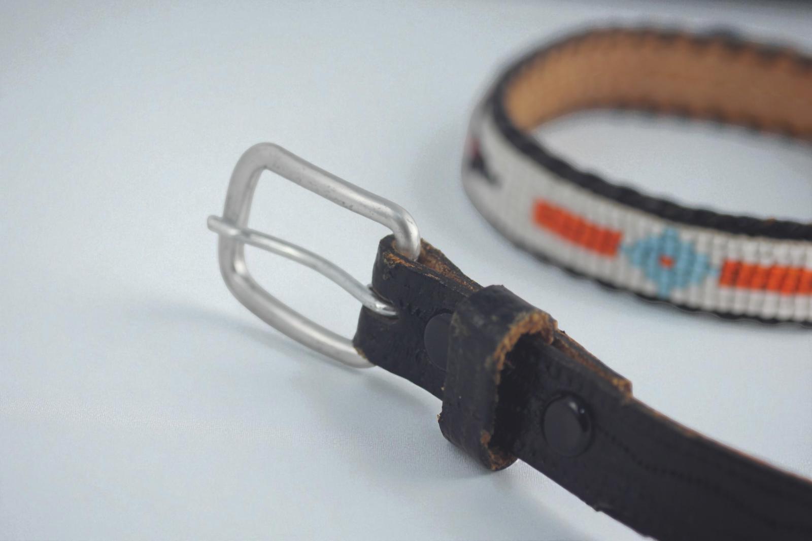 Crafted with durable leather backing and a sturdy metal buckle, it offers both style and functionality.