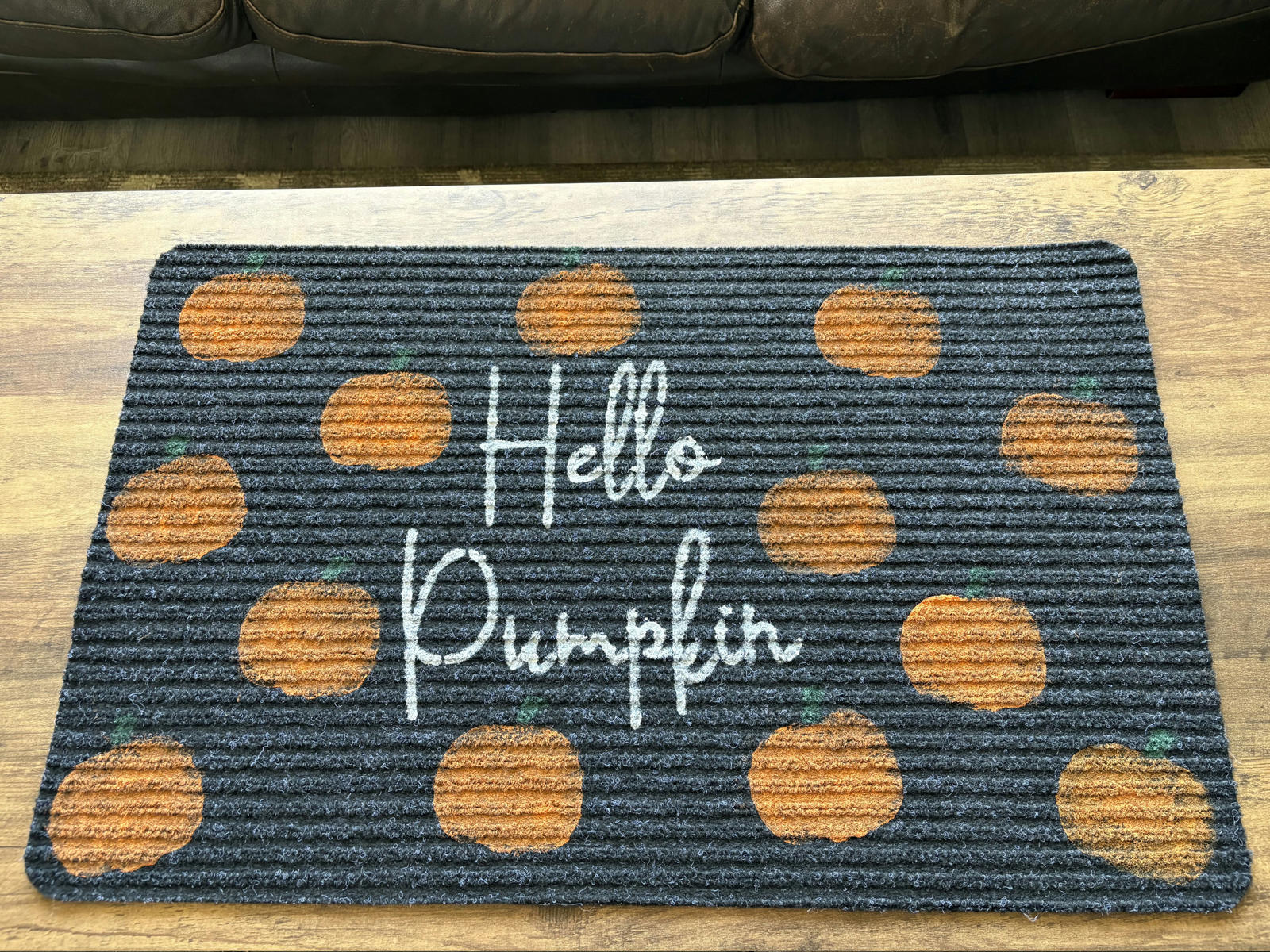 Welcome guests with this charming 'Hello Pumpkin' doormat, perfect for the fall and Halloween season.