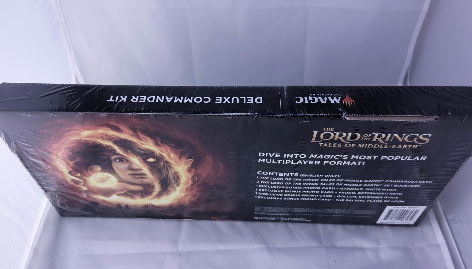 Experience the epic crossover of Magic: The Gathering with The Lord of the Rings in this Universes Beyond Deluxe Commander Kit.