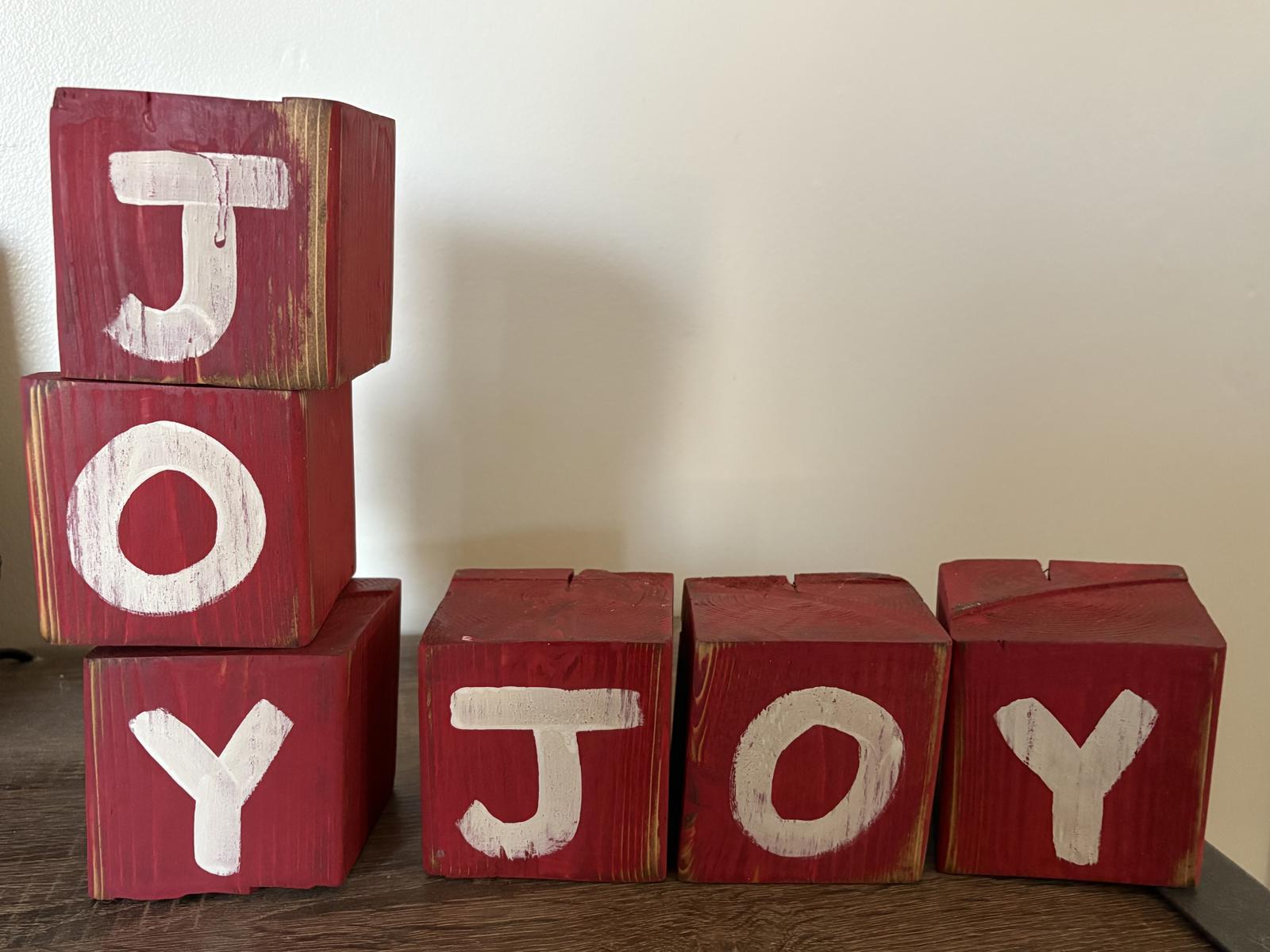 Add a warm and festive touch to your home decor with these handcrafted wooden blocks spelling 'JOY'.