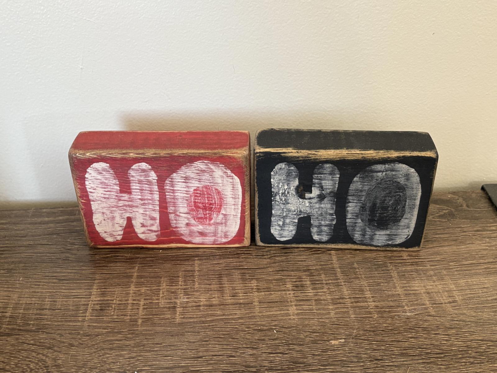 Set of 2 Wooden Holiday Blocks with 'HO HO' Design